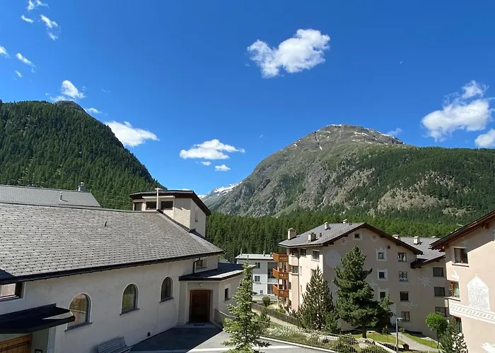 Dachwohnung Im Alpenstil, 60M2 Fur 2P, Mit Garage lägenhet på 60 m^2 har golfbana, vattenpark och tennisplan. Bärmuseet ligger 6 km från lägenheten, medan Muottas Muragl bergstopp ligger ca 3,3 km bort.